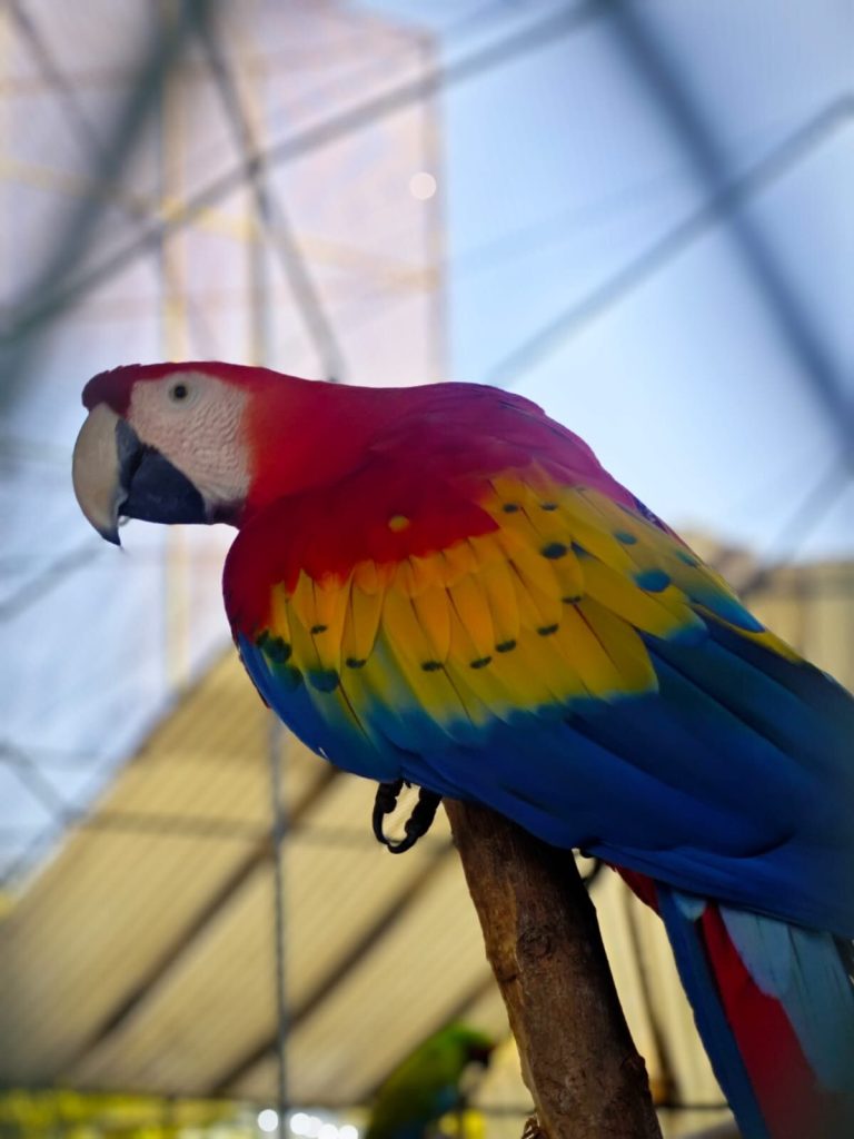 Última cena en el restaurante Casablanca, con una enorme voladera de loros.
