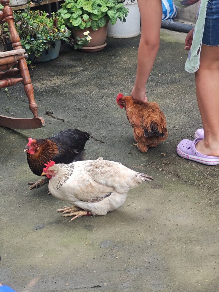 Y luego estaban las gallinas: los niños las bautizaron. Nuestra “petición” para salvarlas no tuvo éxito.